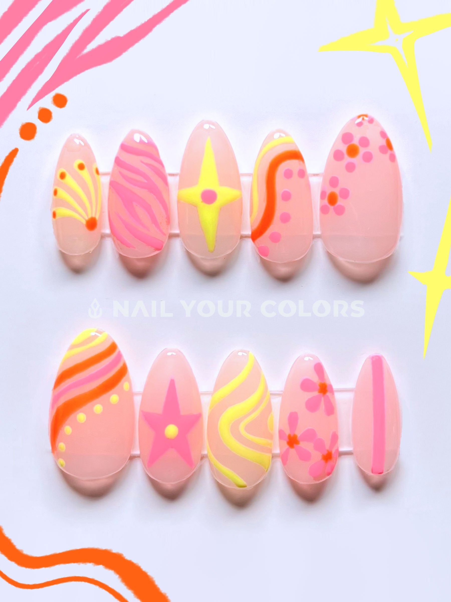 I'm happy to adjust the design to fit your favourite nail shape and size, just select your preference in the options or send me a message for more customization requests!